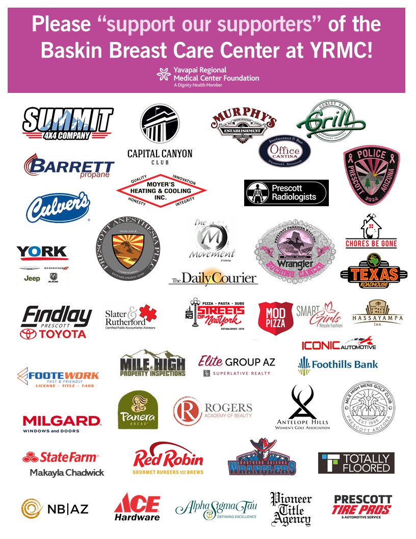 A variety of community organizations partner with the YRMC Foundation to host fundraisers to support the Breast Care Fund. Often personally impacted by incidences of breast cancer, they are interested in promoting breast health, encouraging screening mammograms to reduce breast cancer mortality, and assisting financially vulnerable patients who need breast screening and other services.
